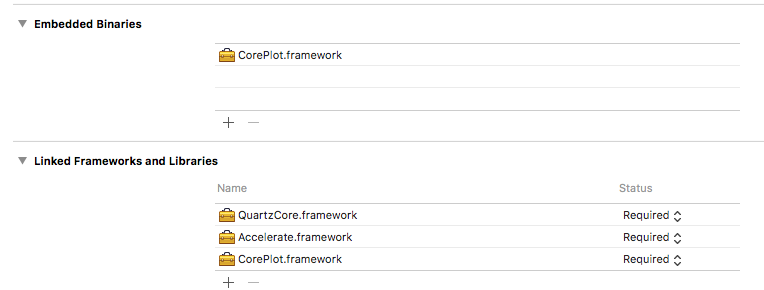 - Linked Frameworks and Librariesの部分が、重複してしまっている場合は、