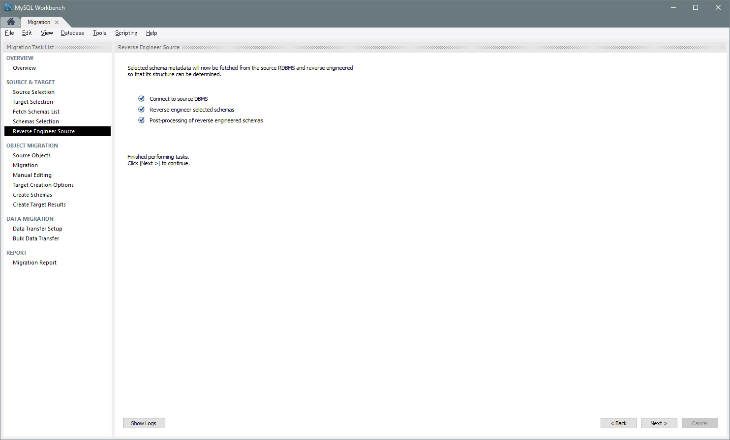 File “C:\Program Files\MySQL\MySQL Workbench 8.0 CE\modules\migration_schema_selection.py”, line 183, in task_reveng